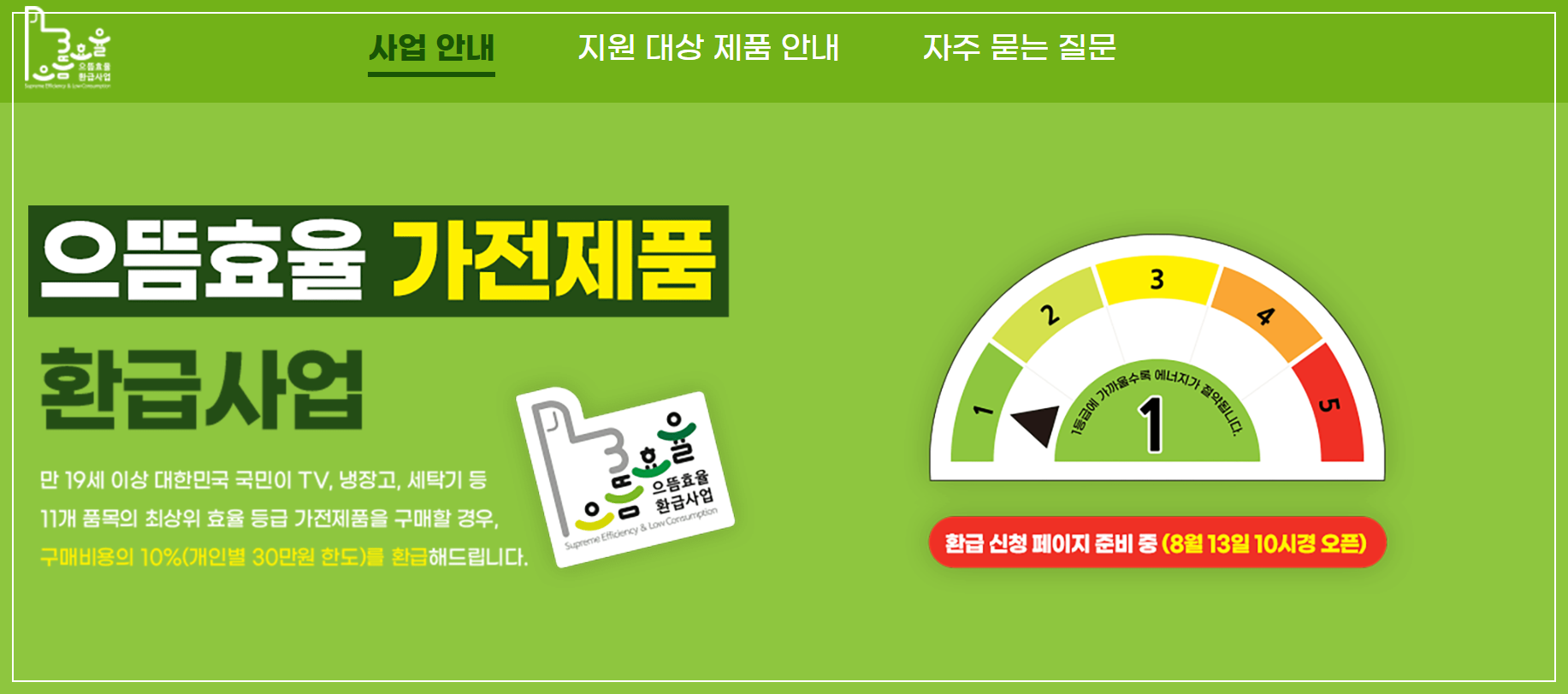 이 제도를 이용하면 에너지효율 1등급 가전제품 구매 시 최대 10% 환급을 받을 수 있는데요,